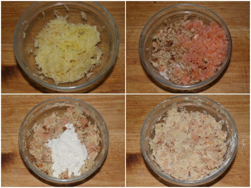 Le patate sono finemente grattugiate e cuociono velocemente, come il salmone.