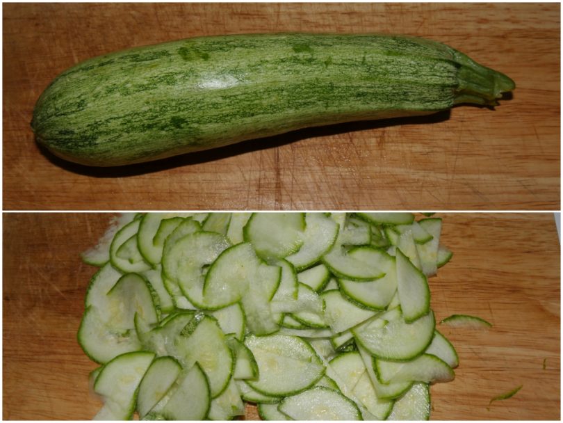 Lavate e spuntate le zucchine, quindi affettatele a rondelle sottilissime.