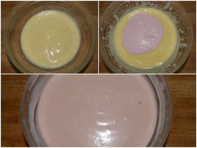 Trasferite il tutto in uno stampo e mettere la bavarese alle fragole in frigo per almeno 4 ore.