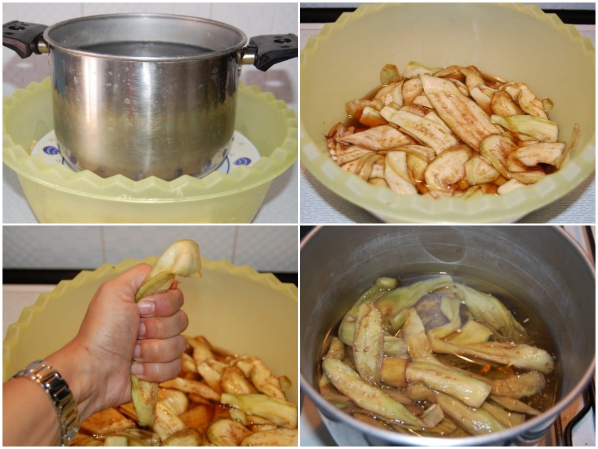 Tuffate le melanzane in acqua e aceto in 2 volte e cuocetele per 30 secondi