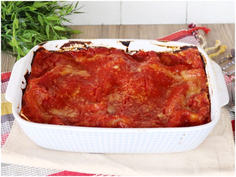 Fate raffreddare una decina di minuti, quindi tagliate le lasagne a quadrotti e servitele.