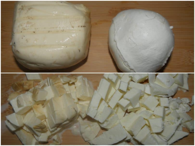 Fate sgocciolare provola e fior di latte e poi tagliateli a cubetti