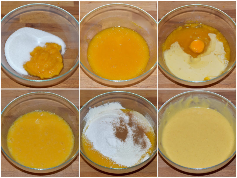 Lasciatela intiepidire leggermente, quindi incorporate prima lo zucchero; poi anche uovo, olio, latte e vaniglia; infine farina, lievito e bicarbonato setacciati, più sale e spezie.
