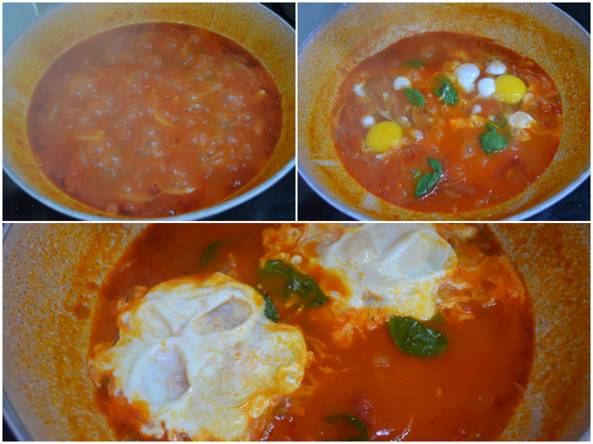 Verso fine cottura, quando il sughetto si sarà già abbastanza ristretto, aggiungete le uova, disponendolo un po' distanziate tra loro.