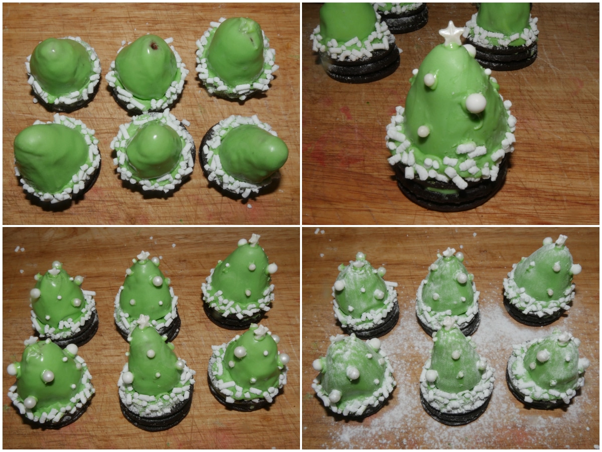 In entrambi i casi, affrettatevi a decorare gli alberelli con codette e zuccherini finché il cioccolato è ancora fuso, poi lasciate asciugare completamente.