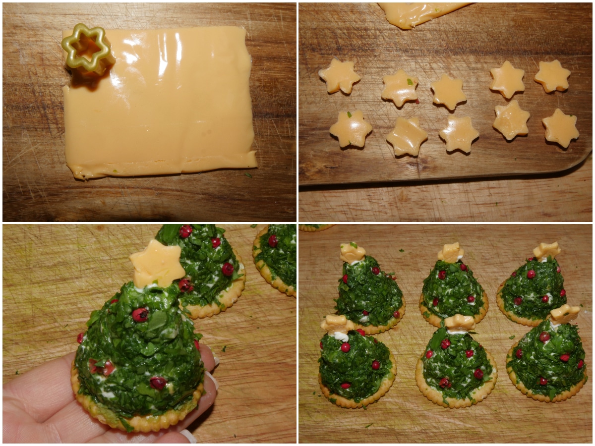 Infine ricavate 10 stelline dalla fetta di cheddar rimasta e completate i vostri alberelli usandole come puntali.