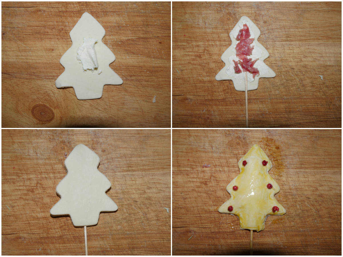 Continuate così per tutti gli alberelli, poggiandoli su una teglia rivestita di carta forno man mano che sono pronti.