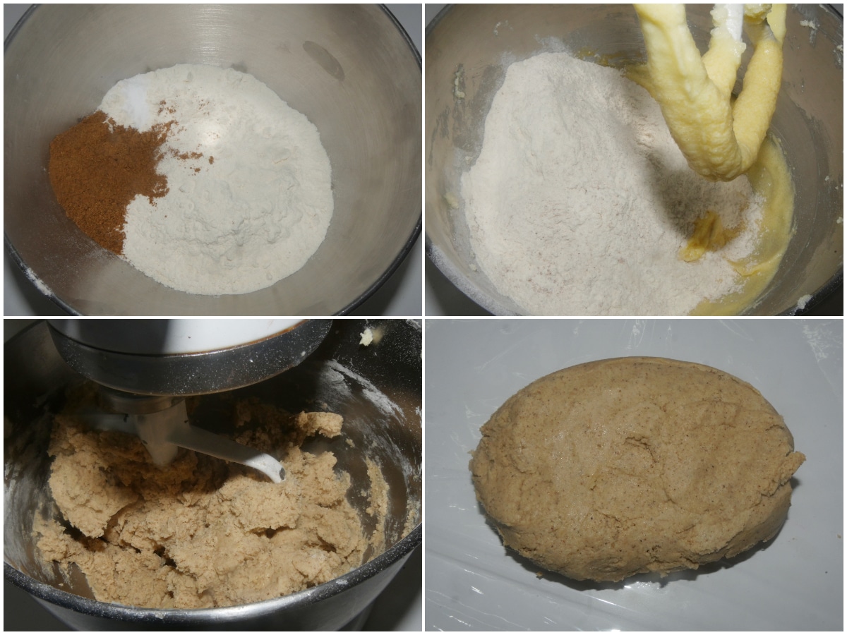 Aggiungete anche la farina, il bicarbonato e le spezie e lavorate fino ad ottenere un composto omogeneo, che avvolgerete con pellicola per alimenti e lascerete riposare in frigo per 1 ora.