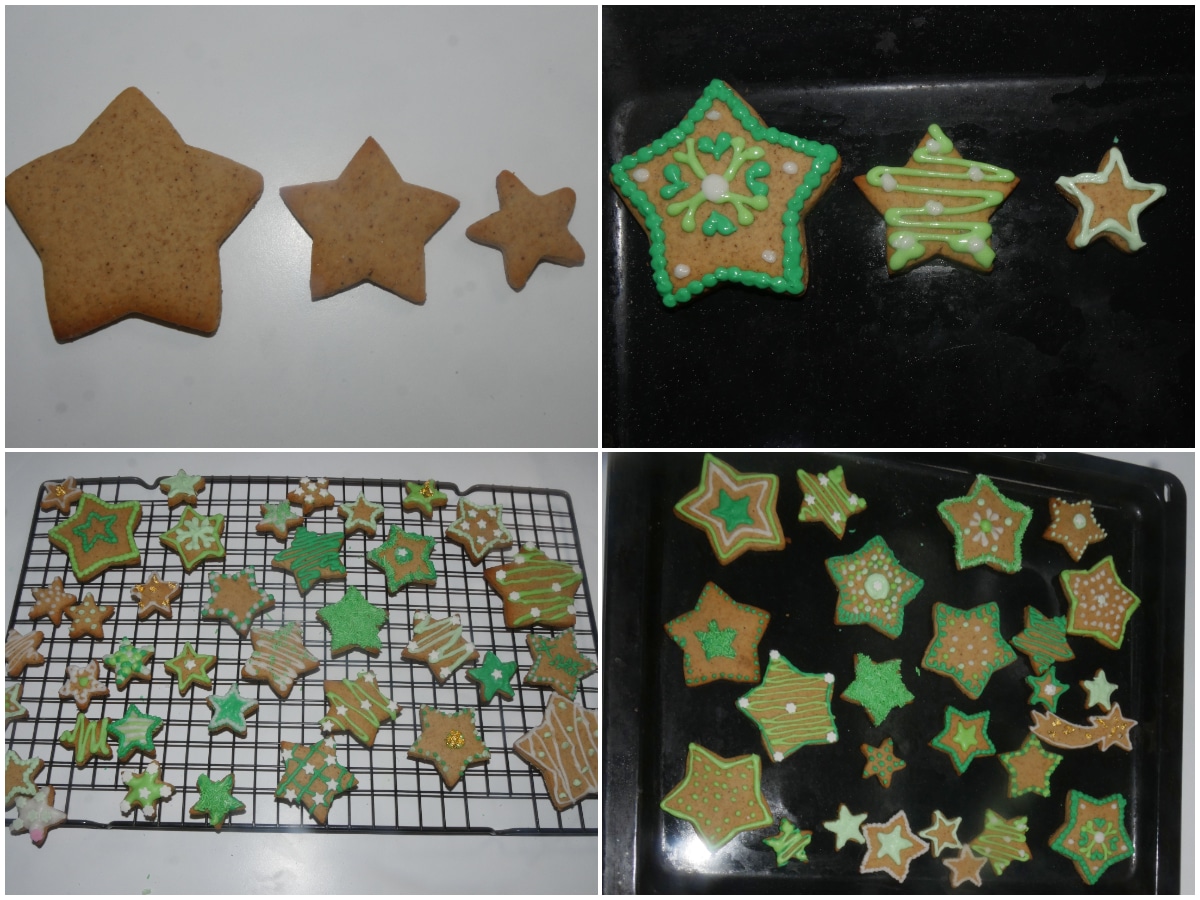 Decorate a piacere tutte le vostre stelline, quindi lasciate asciugare per almeno 4-5 ore, in modo che quando andrete ad applicare i biscotti sul cono non rovinerete le decorazioni.