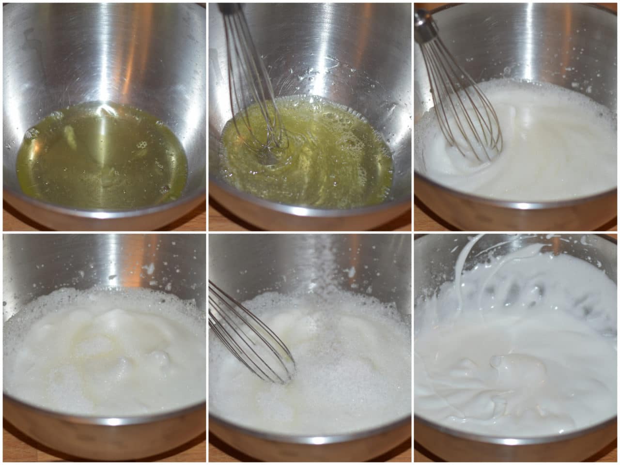 Montate gli albumi a neve ben ferma con il succo di limone e lo zucchero, poi trasferiteli in una sac-à-poche dal beccuccio a stella.