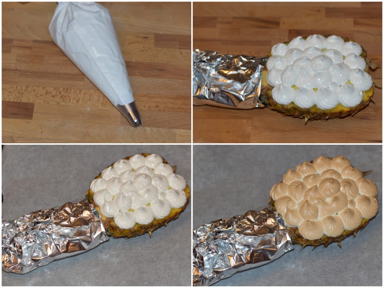 L'ananas meringato è pronto, non vi resta che eliminare l'alluminio e servire.
