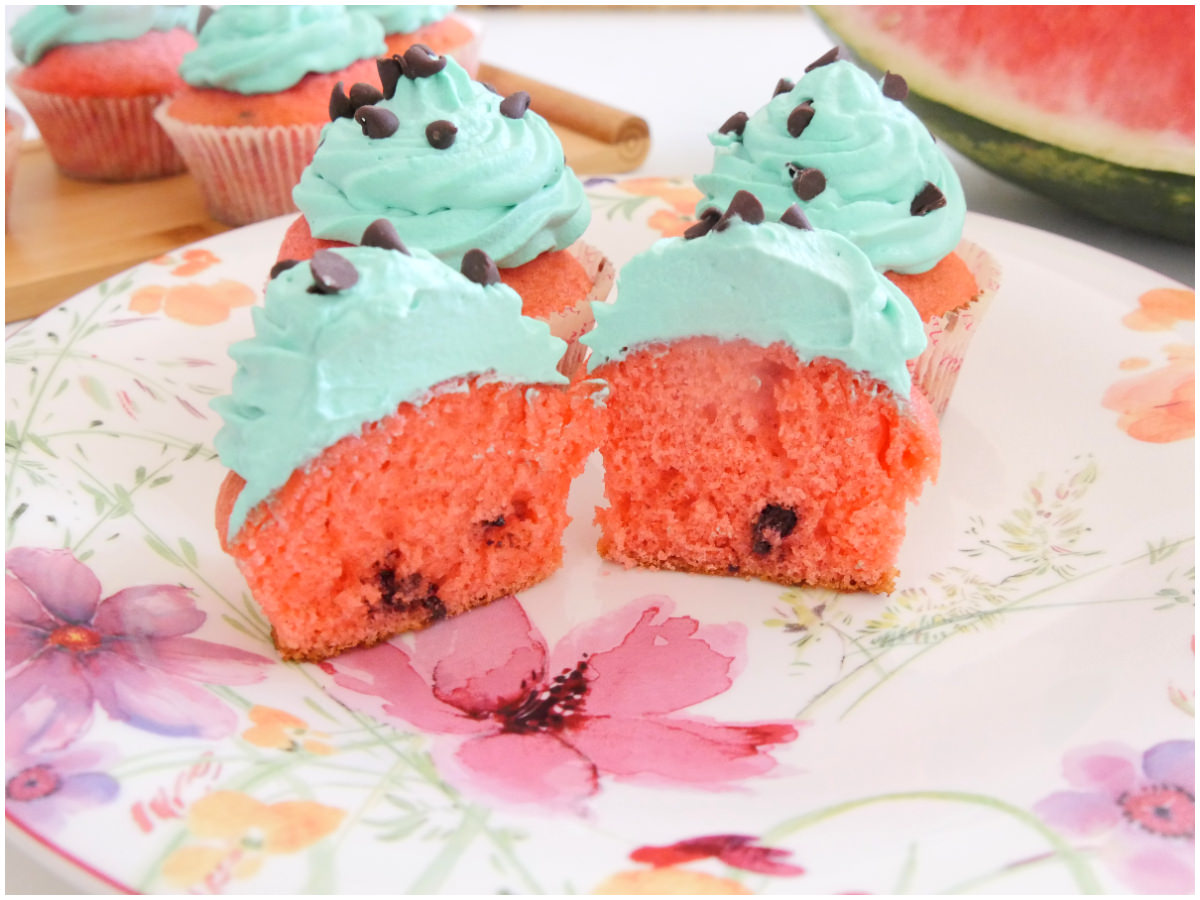 Gli anguria cupcakes sono pronti, serviteli subito o conservateli in frigo fino al momento di servirli.