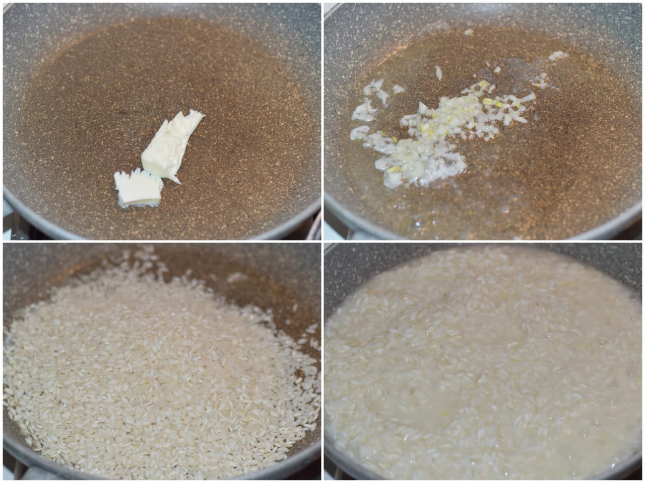 Unite il riso e lasciatelo tostare, quindi aggiungete il brodo caldo poco per volta e portate a cottura.