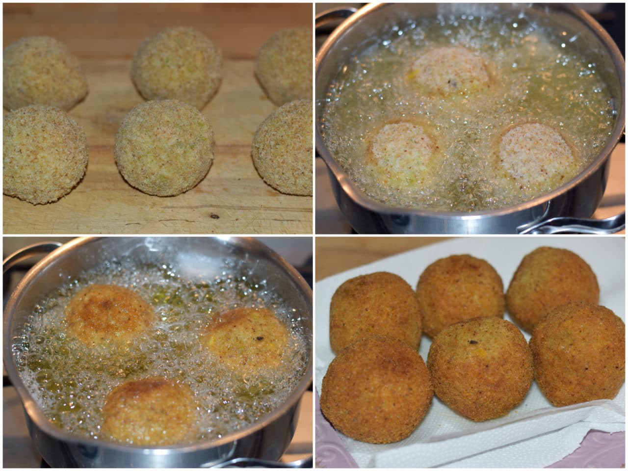 Infine friggeteli, pochi per volta, in abbondante olio di semi ben caldo, girandoli per farli dorare in maniera uniforme.