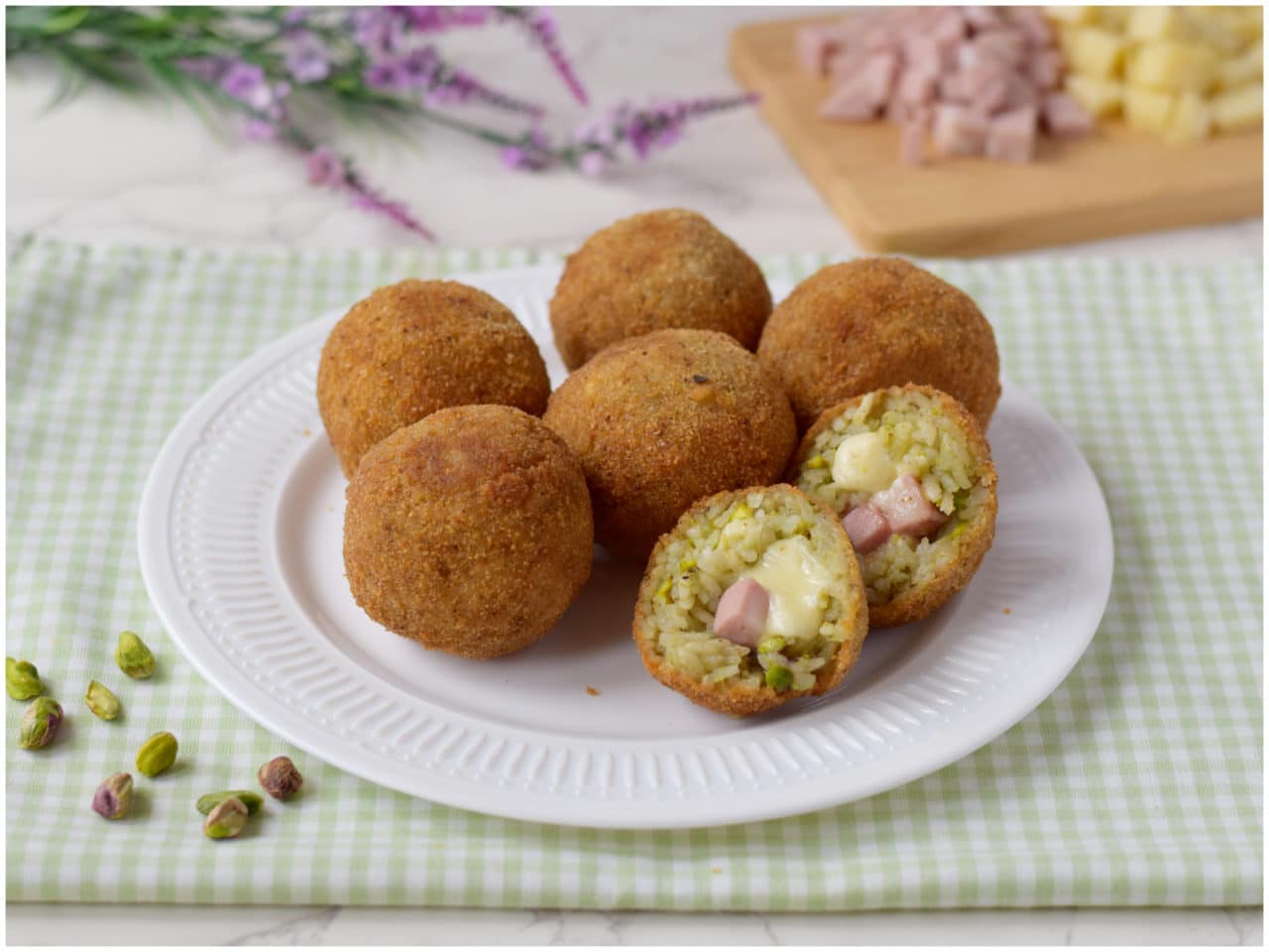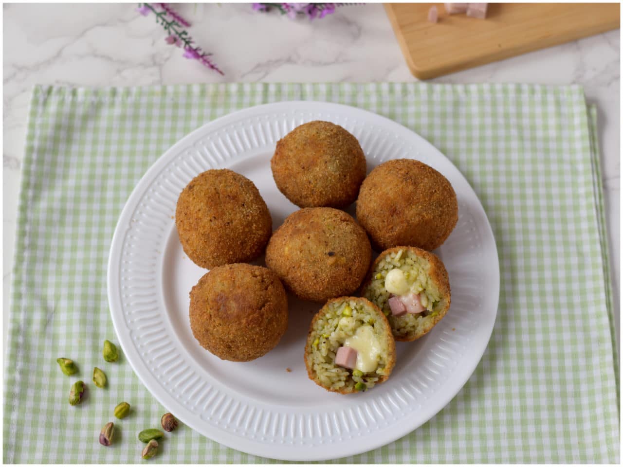 I vostri arancini al pistacchio sono pronti, serviteli caldi o almeno tiepidi.