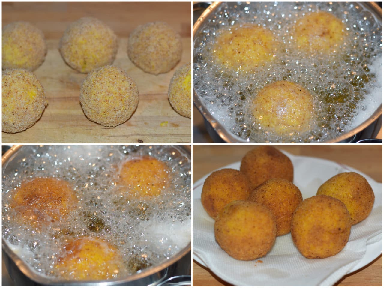 Infine friggeteli in olio ben caldo, girandoli per farli dorare bene e scolandoli poi su carta da cucina con una schiumarola.
