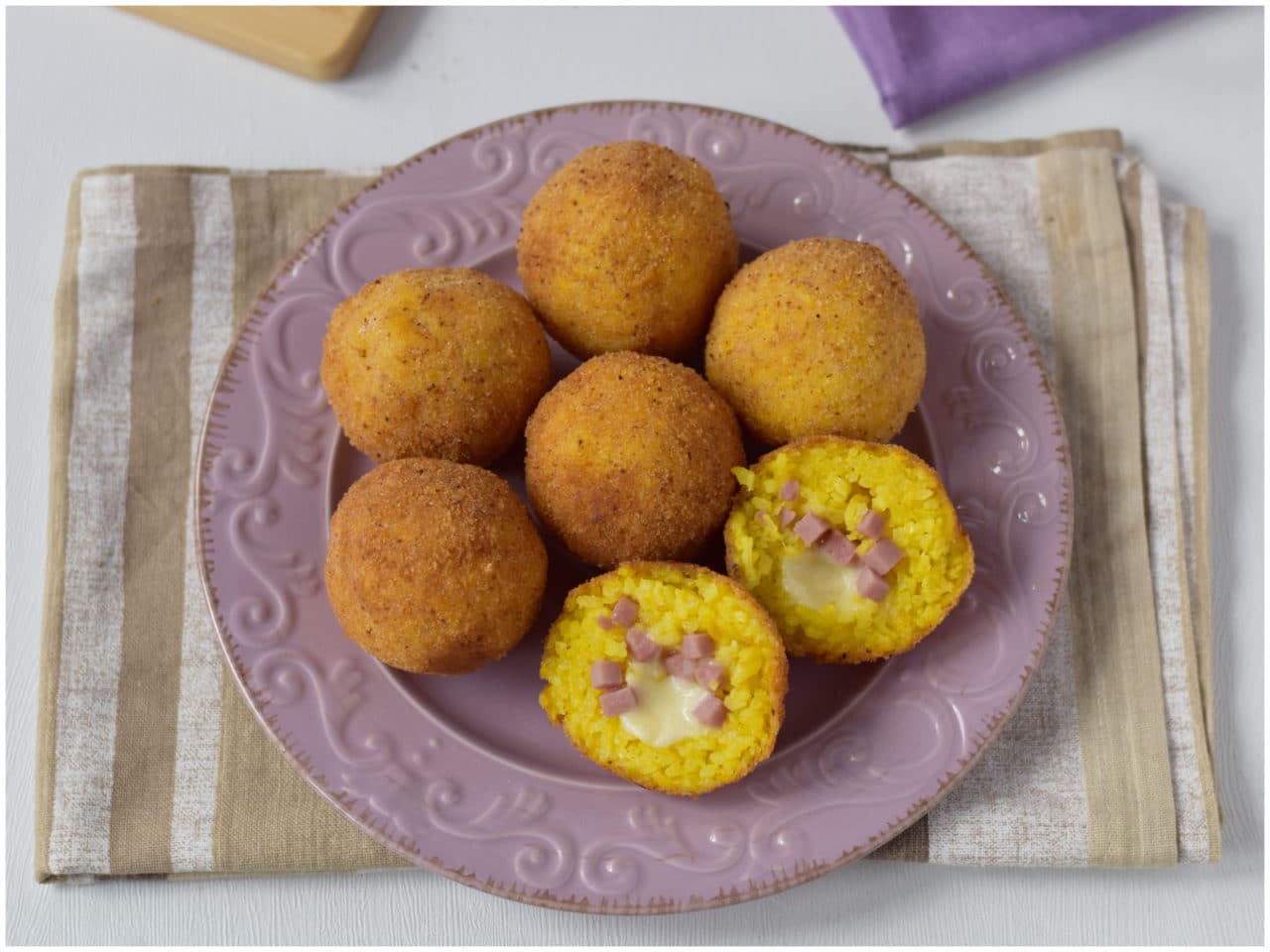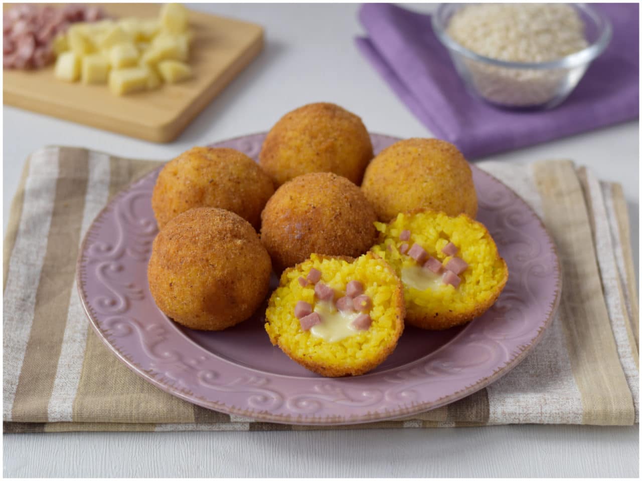 Gli arancini di riso in bianco sono pronti, serviteli ben caldi per apprezzarli al meglio.