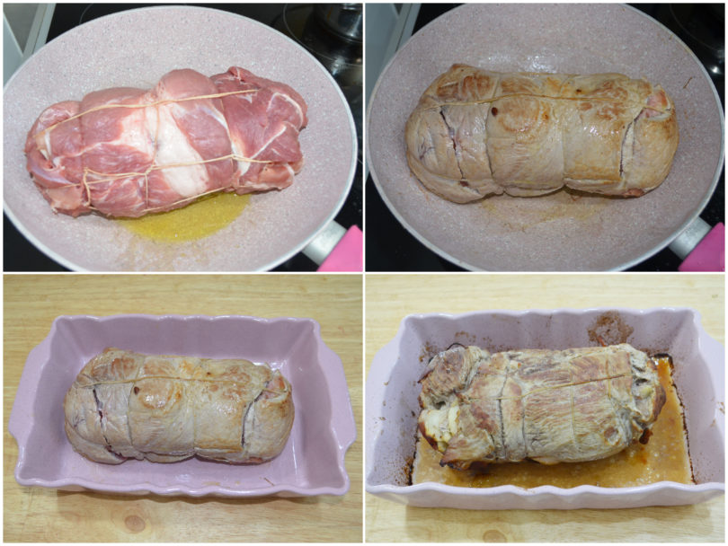 Mettete l'arrosto in padella con un filo d'olio e fatelo rosolare per pochi minuti, continuando a girarlo, in modo da sigillare i succhi all'interno facendo creare una bella crosticina dorata tutto intorno.