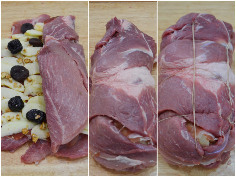 A questo punto arrotolate l'arrosto su se stesso per chiuderlo, facendo attenzione a non far uscire il ripieno, quindi sigillatelo legandolo con spago da cucina.