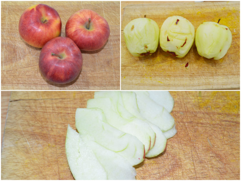 Pulite le mele e tagliatele a fettine sottili (io ne ho usate 3 perché le mie mele erano molto piccole).