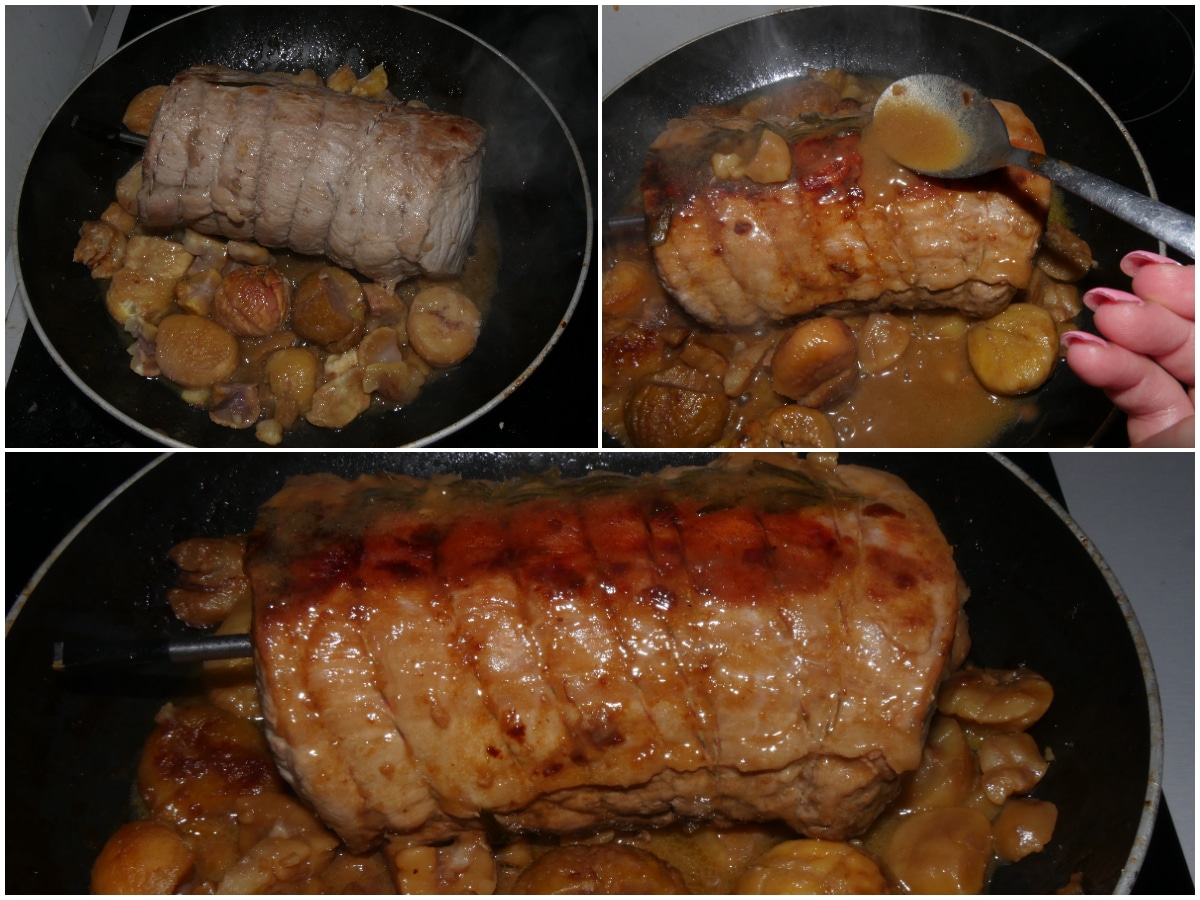 L'arrosto alle castagne è pronto: aspettate almeno 5 minuti prima di tagliarlo a fette servirlo.