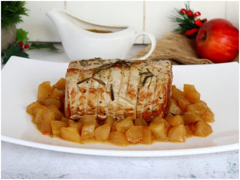 Servite l'arrosto con le mele e la salsina di accompagnamento.