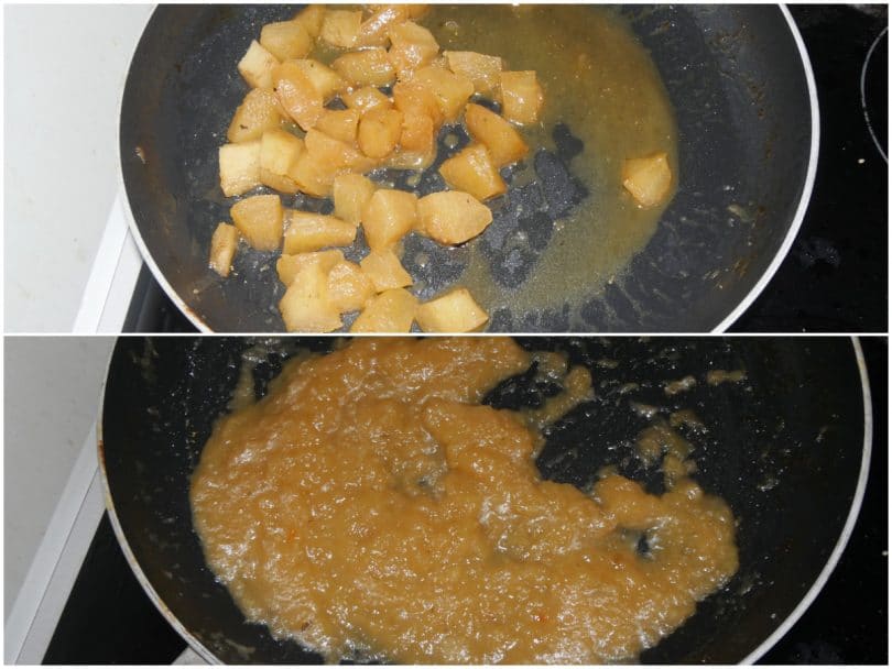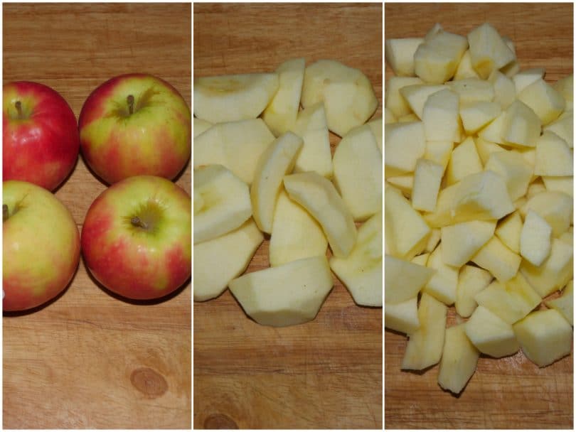 Nel frattempo sbucciare le mele e tagliarle a tocchetti