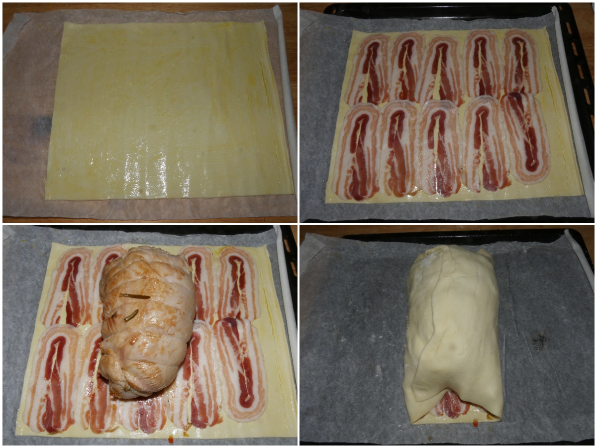 Posizionate l'arrosto al centro della sfoglia e avvolgetelo completamente, sigillando bene i bordi.