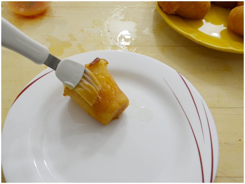 Spennellate ora i babà con la marmellata di albicocca per renderli lucidi. Fate riposare in frigorifero circa 1 ora.