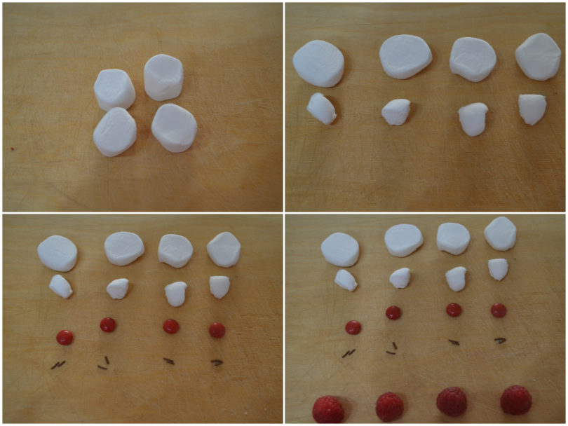 Tagliate 1 dei marshmallow in 4 parti (sarà il pon pon del cappellino).
