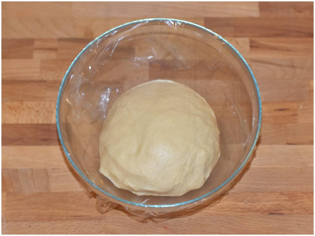 Trasferite in una ciotola leggermente imburrata, coprite con pellicola per alimenti e lasciate lievitare in frigo per tutta la notte.
