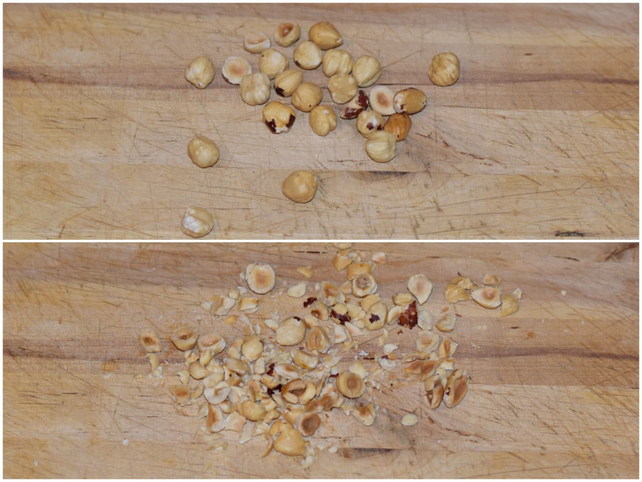 Tritate grossolanamente le nocciole.