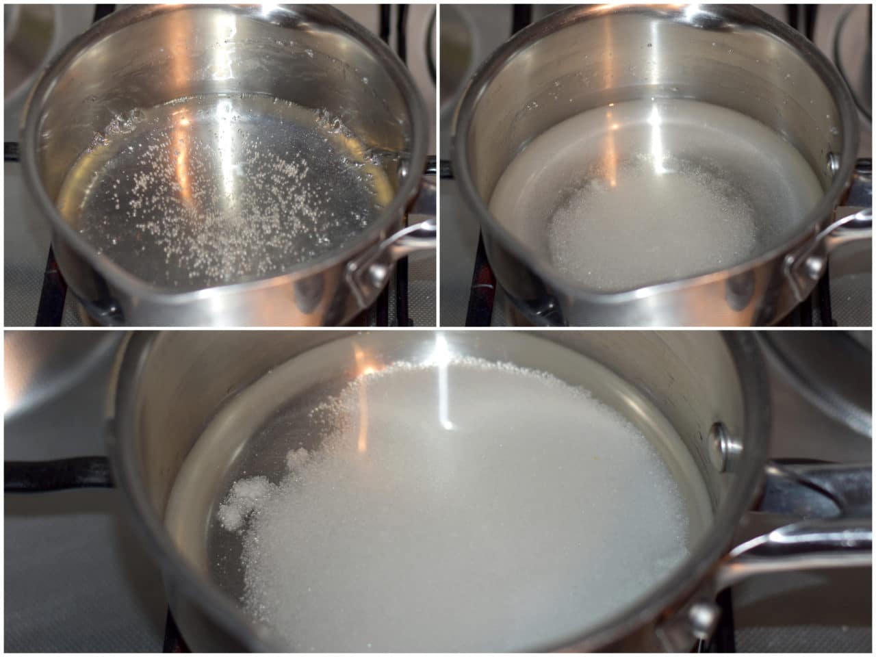 Intanto preparate uno sciroppo versando acqua e zucchero in un pentolino e portando a ebollizione, poi lasciate raffreddare.