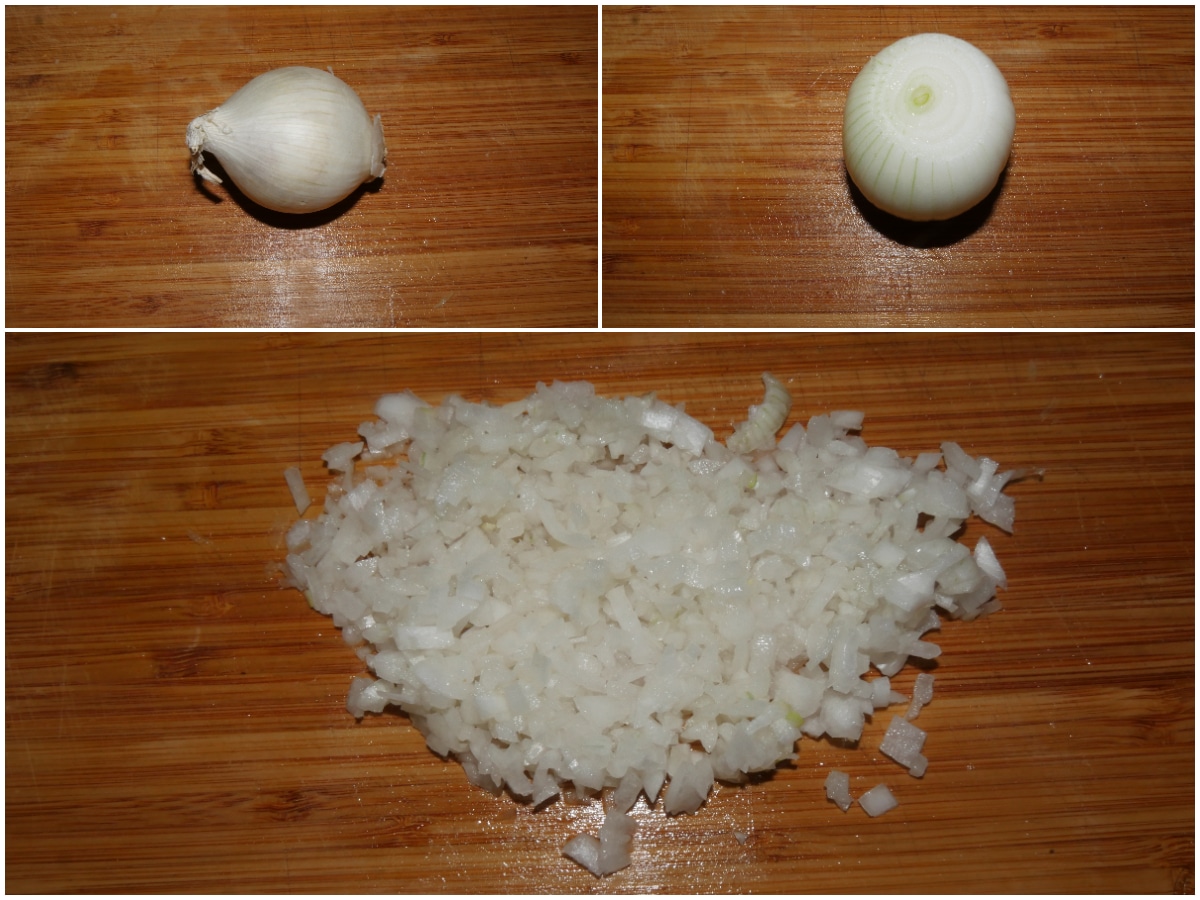 Lavate i pomodorini e tagliateli a metà (o in 4 parti, se sono grandi); mondate le cipolle e tritatele finemente.
