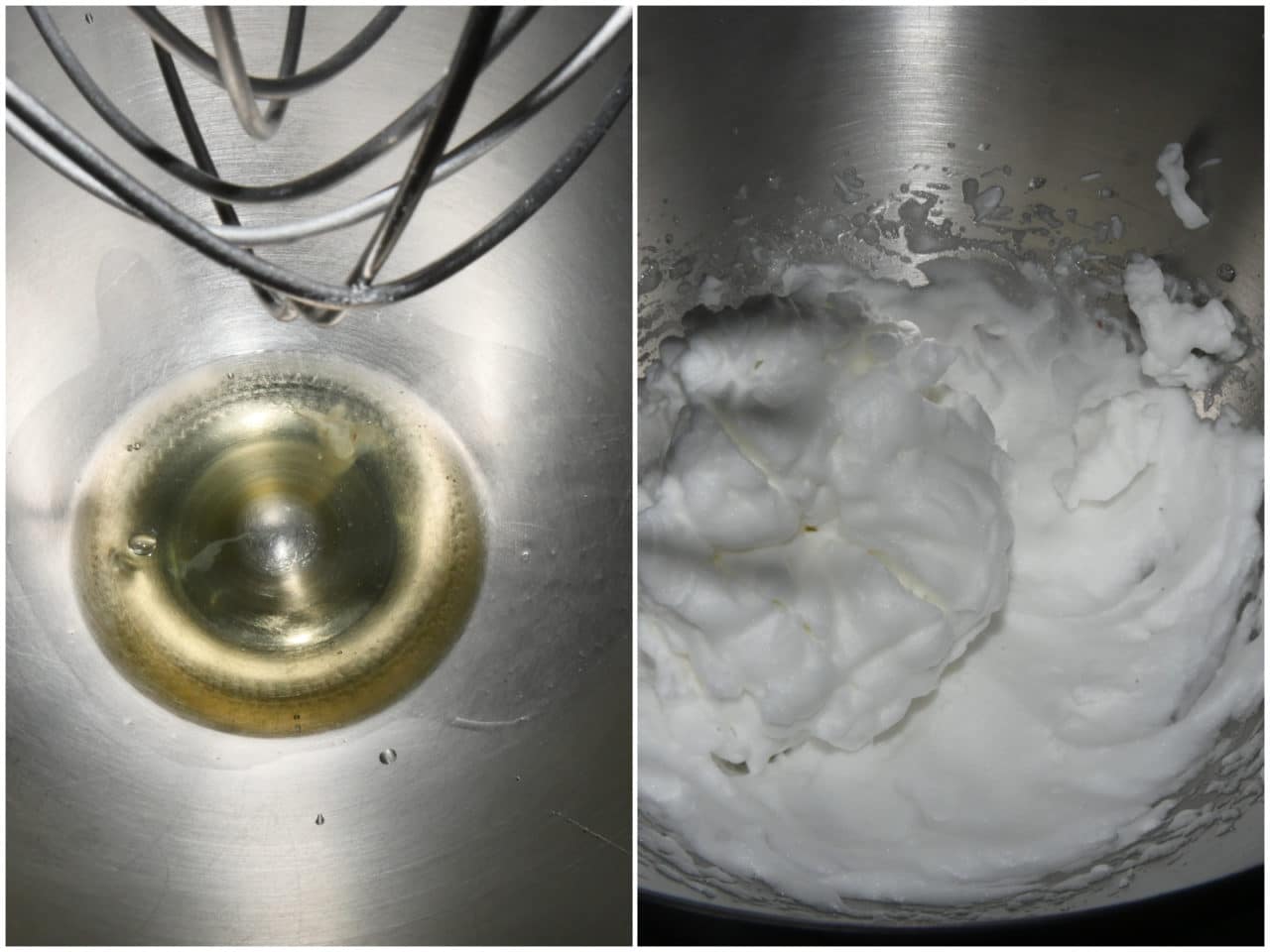 Mi permetto di aggiungere una piccola critica: mettere il sale negli albumi aiuta a farli gonfiare prima, ma li fa anche smontare prima. Perantenere gli albumi sodi, soprattutto in preparazioni come questa che li vedono riposare a lungo, sarebbe meglio aggiungere qualche goccia di limone.