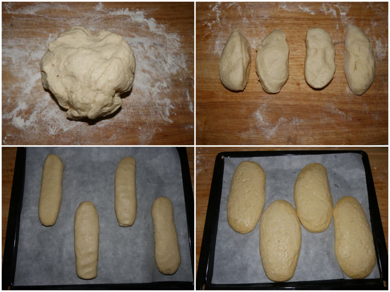 Dividete l'impasto in 4 panetti uguali e sagomateli per creare dei salsicciotti.