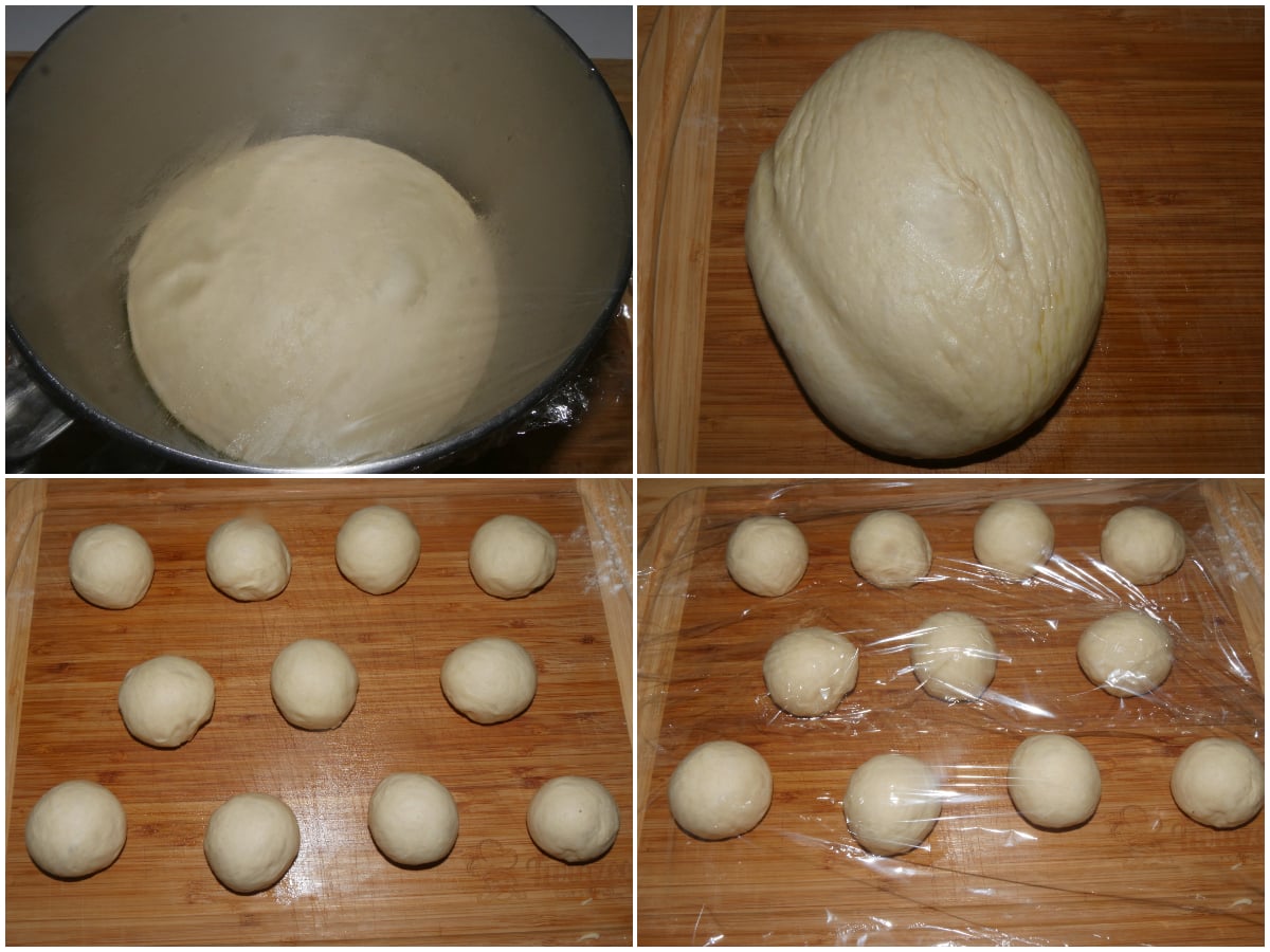 Riprendete l'impasto e dividetelo in 10 palline uguali, coprite nuovamente con pellicola e lasciate riposare per 30 minuti.