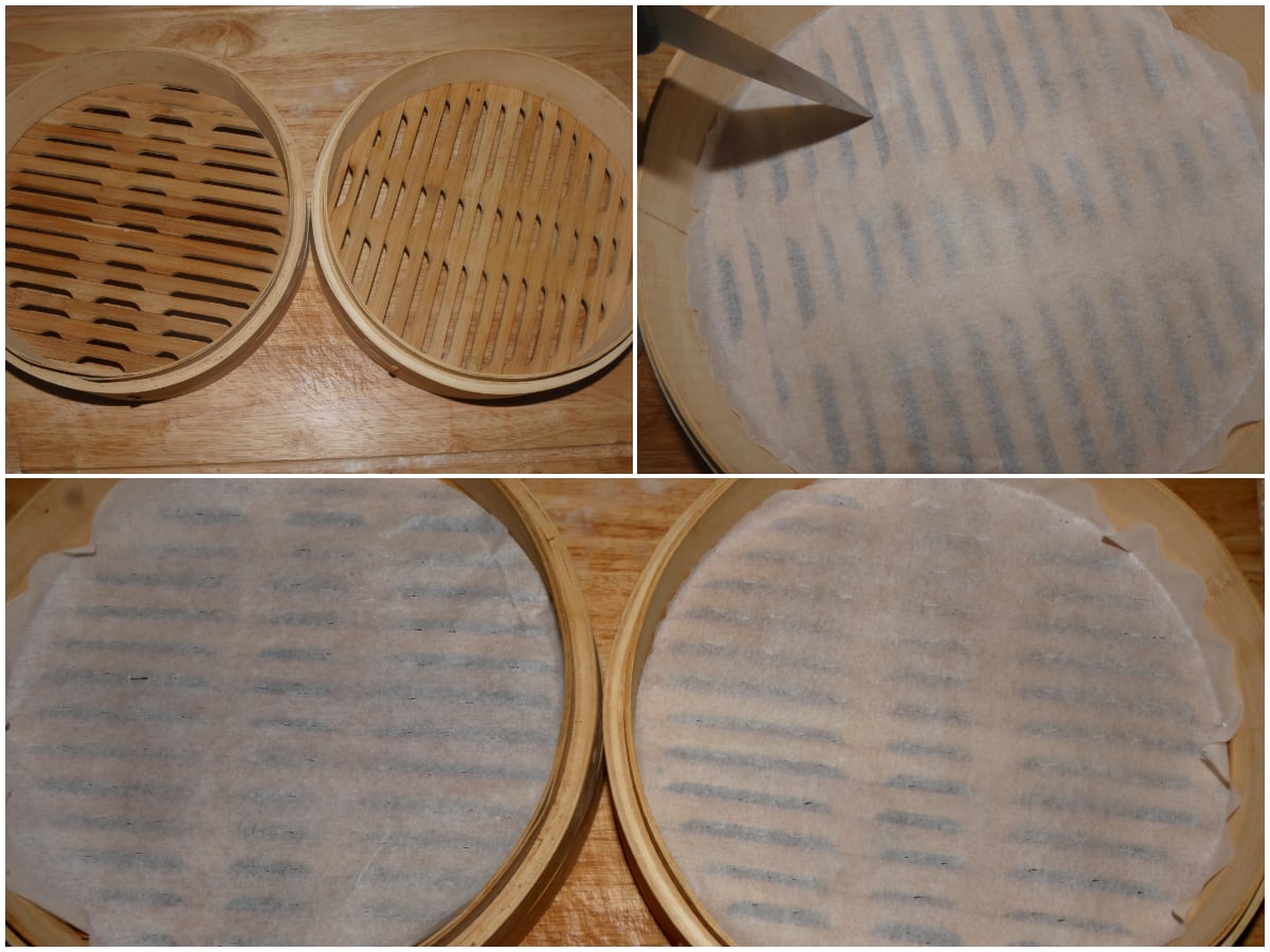 Foderate i cestelli di una vaporiera con carta forno e bucherellatela.