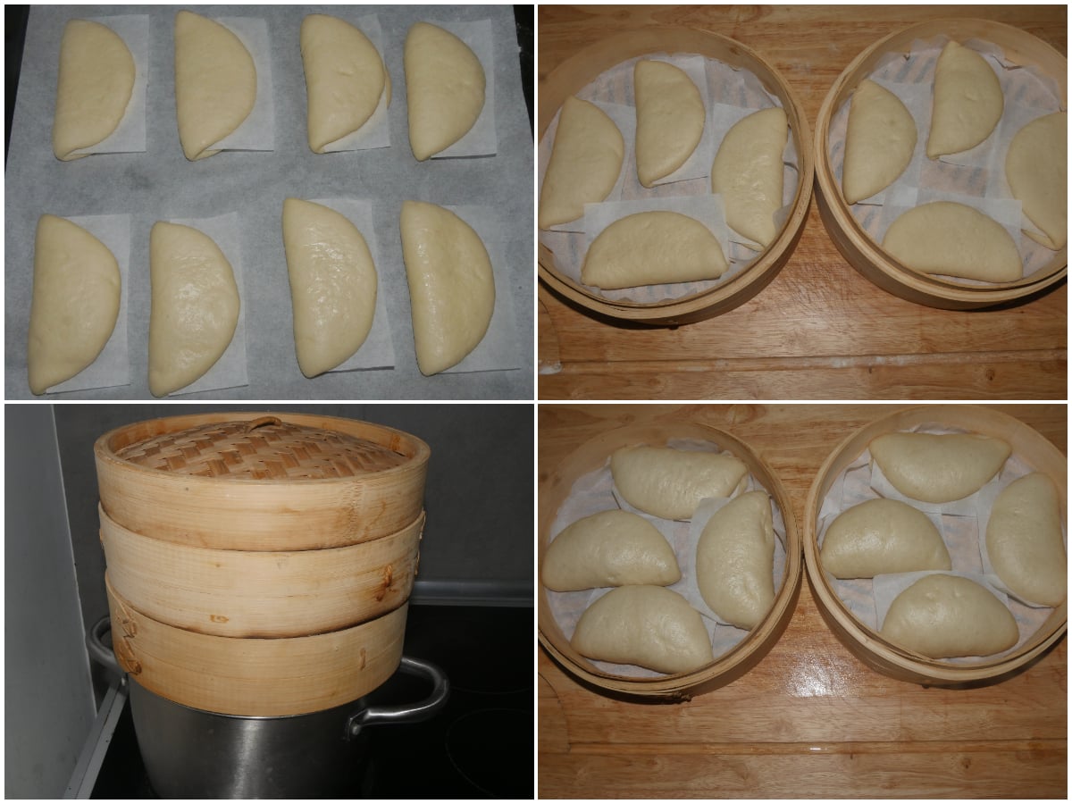 Trasferite i paninetti nei cestelli, impilate i cestelli sopra una pentola con acqua in ebollizione, chiudete con coperchio e cuocete per circa 15 minuti