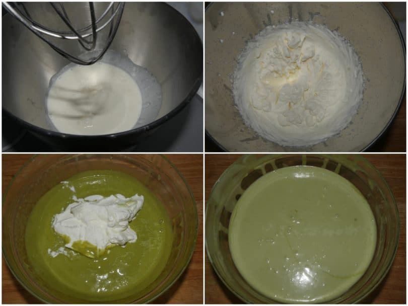 Montate la panna ben fredda di frigo e incorporatela alla crema al pistacchio ormai fredda, con movimenti delicati dal basso verso l'alto, in modo da non farla smontare.