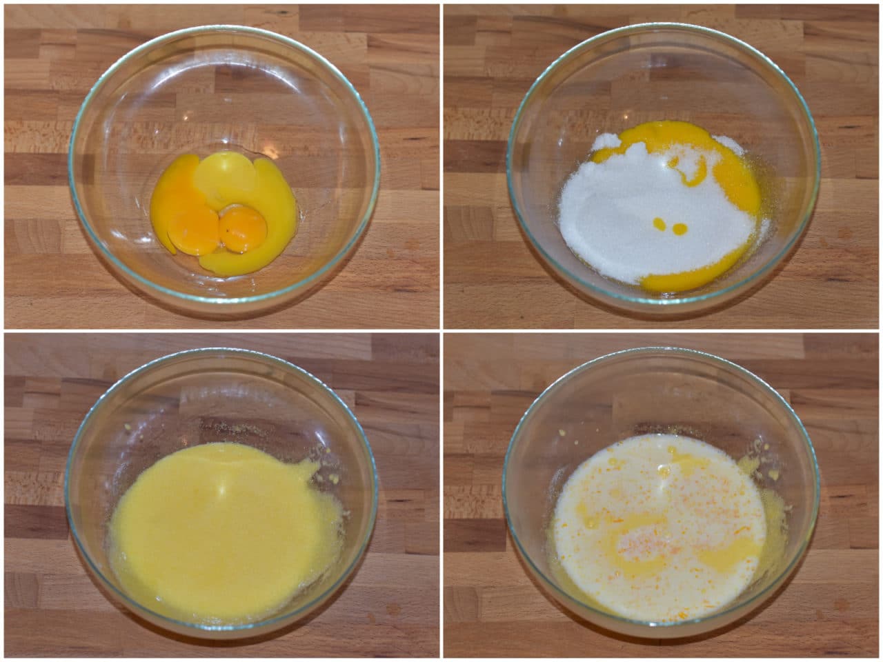 Sbattete bene i tuorli con lo zucchero, quindi incorporate il latte ormai tiepido.