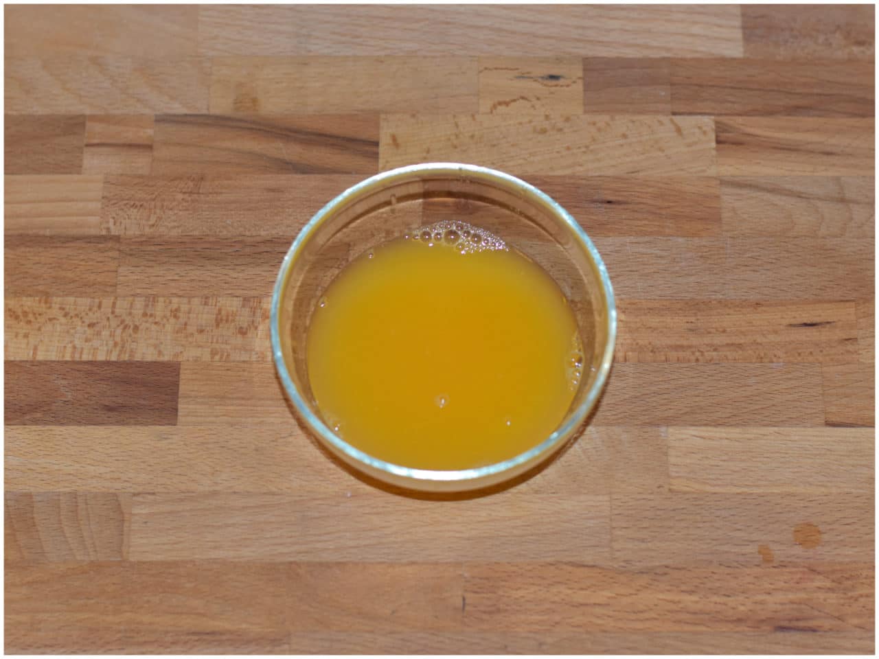 Spremete l'arancia di cui avete grattugiato la buccia: vi serviranno 100 ml di succo.