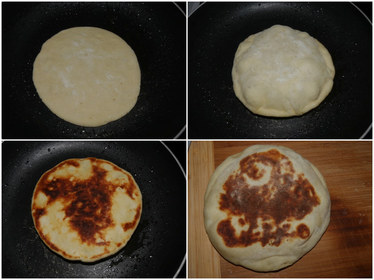 Ungete una padella con poco burro e cuocete 1 bazlama per volta, da entrambi i lati, a fiamma medio-bassa.