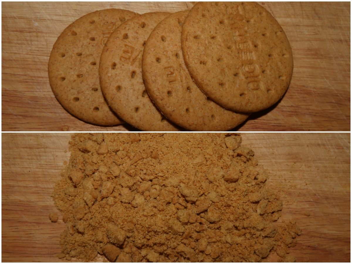 Innanzitutto sbriciolate grossolanamente i biscotti e lasciateli da parte.