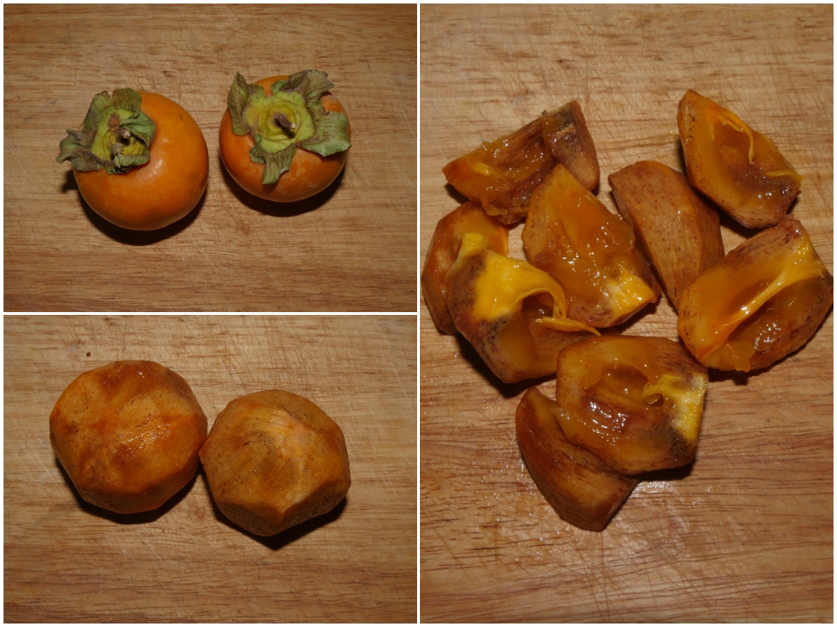 Mondate i cachi e tagliateli a pezzi.