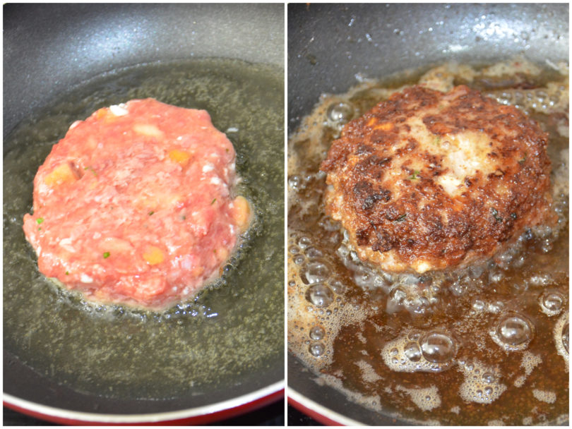Quando l’impasto delle polpette risulterà omogeneo, formate le polpette mettendo al centro la fetta sbriciolata e richiudendo come a formare delle grosse polpette schiacciate.