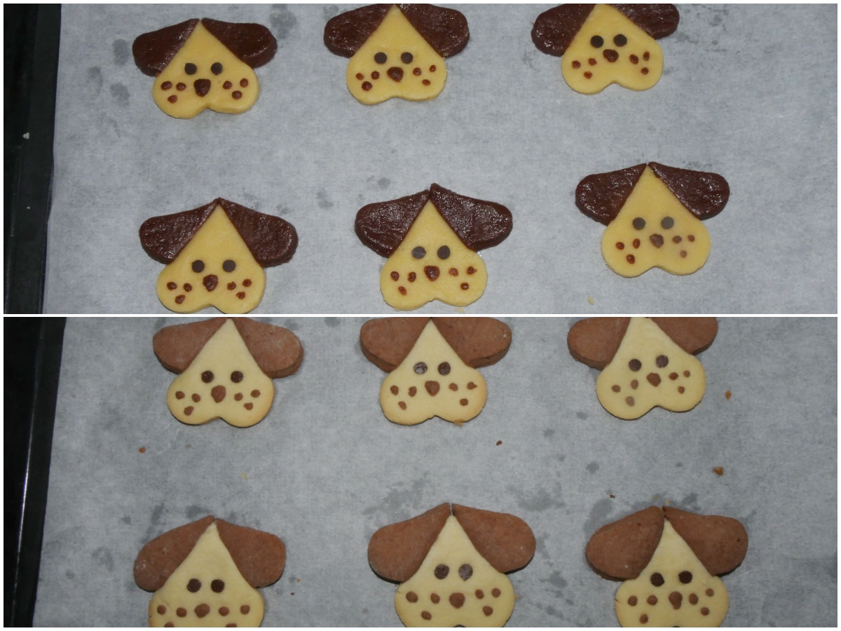 I biscotti a forma di cane sono delle piccole chicche, deliziose da mangiare e troppo carine da vedere. Facili da fare, sono perfetti da preparare con i piccoli di casa per passare un'oretta in compagnia e mangiarli poi insieme all'ora del tè. Tutto quello che vi servirà sarà una pasta frolla, metà normale e metà al cacao, uno stampino per biscotti a forma di cuore e qualche goccia di cioccolato. Non ci credete? Sbirciate il procedimento qui di seguito ;)