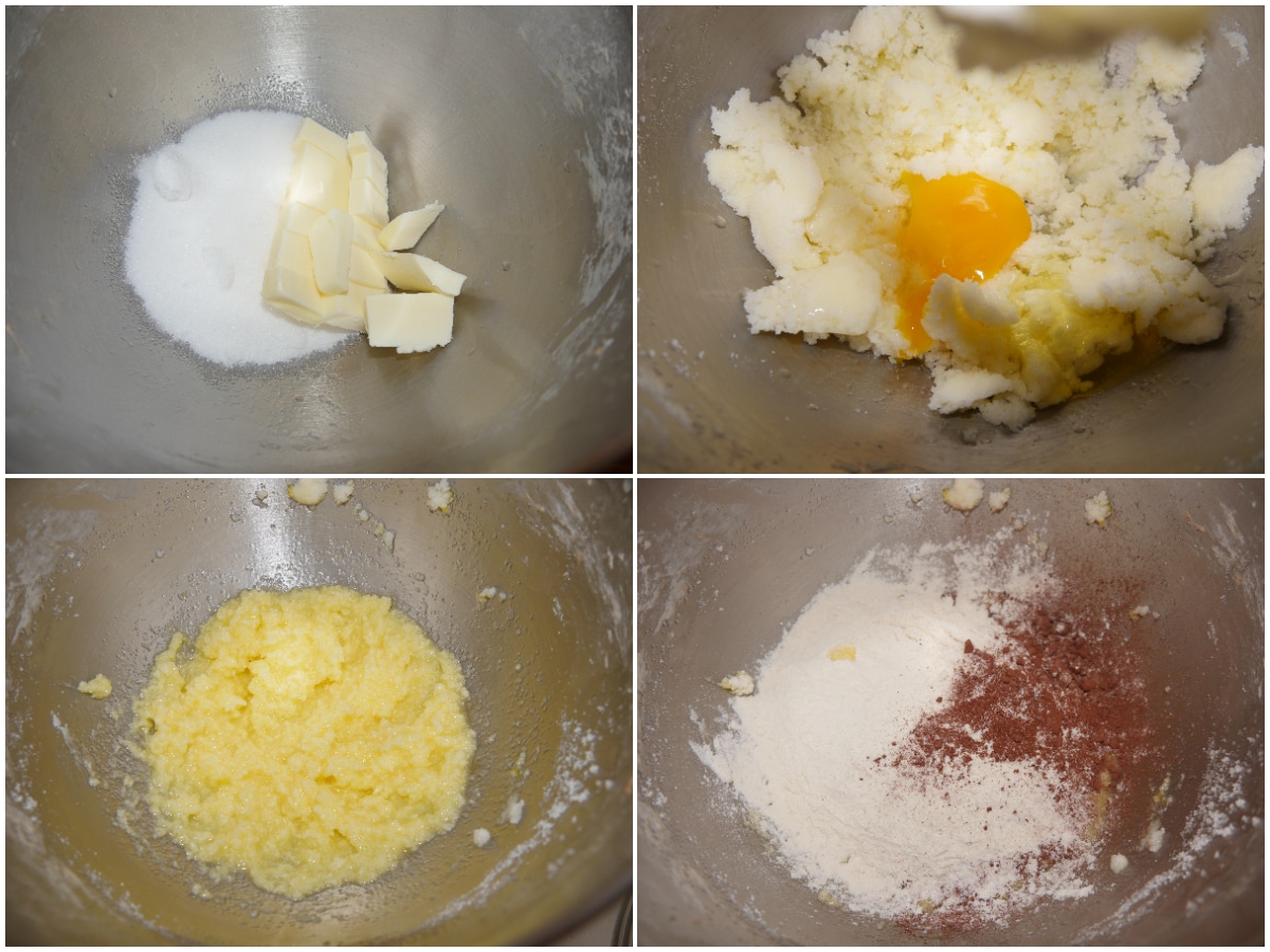 Lavorate a crema il burro con lo zucchero, quindi incorporate prima l'uovo e poi le polveri (farina, cacao e lievito).