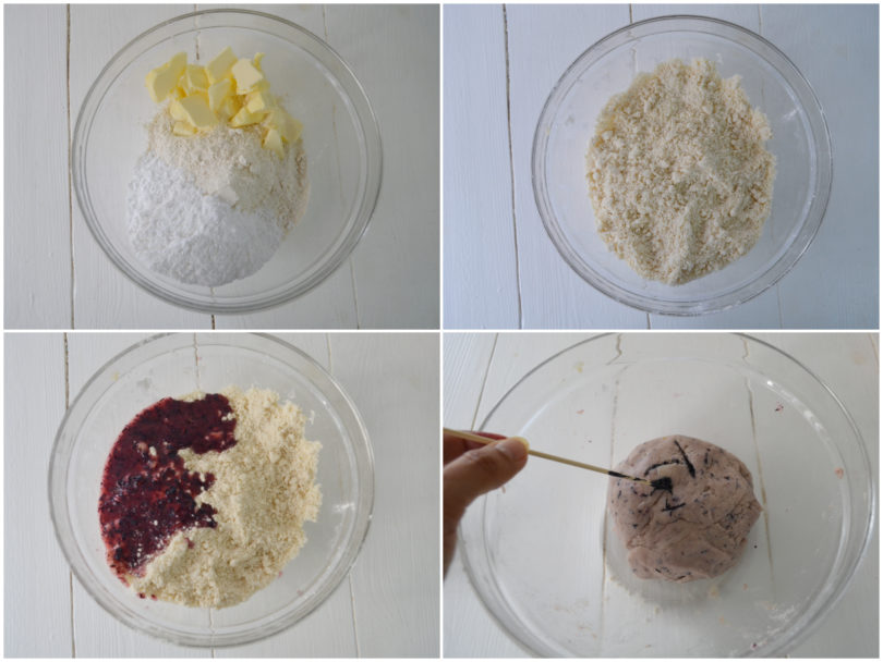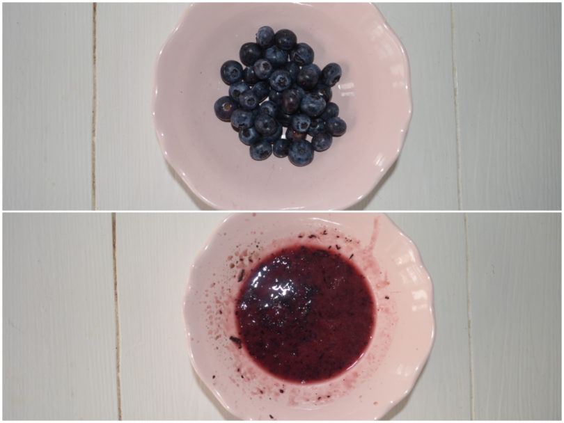 Incorporate quindi anche mirtilli e limone, e infine un pochino di colorante viola.