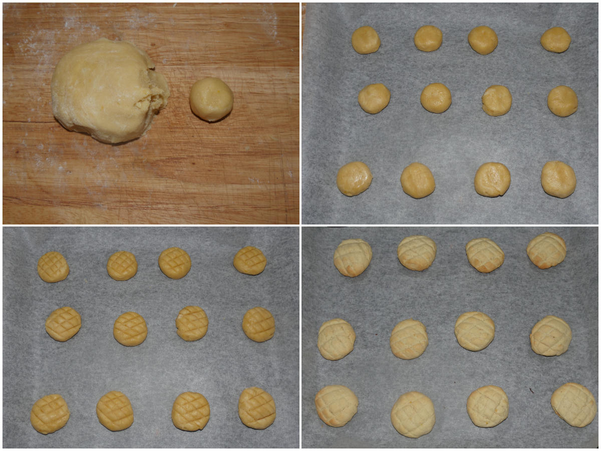 Avvolgete con pellicola trasparente e lasciate riposare in frigo per almeno 30 minuti, quindi riprendete la frolla, dividetela in palline grandi come una noce, distribuitele sulla teglia rivestita di carta forno e fate delle incisioni a rombo.